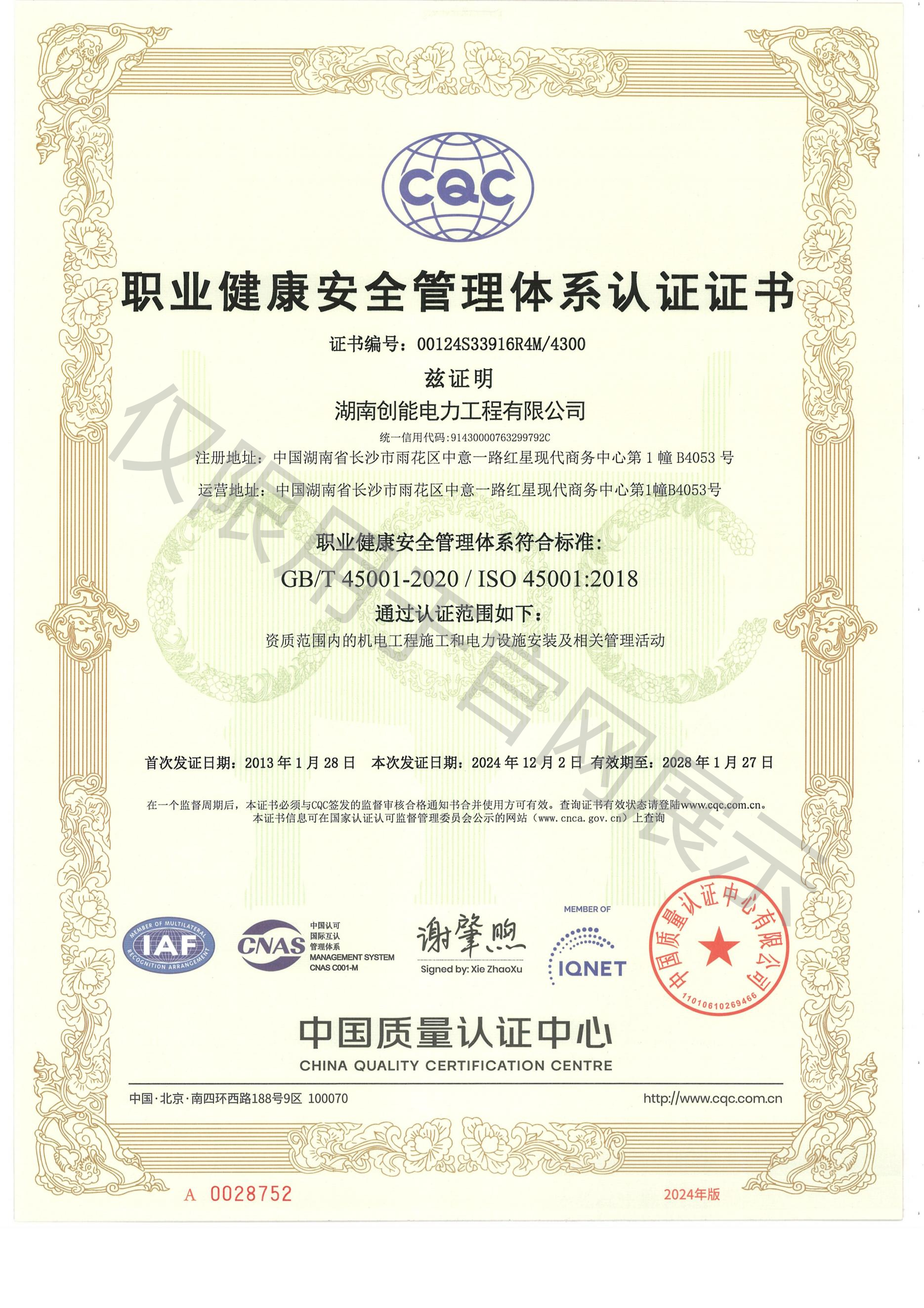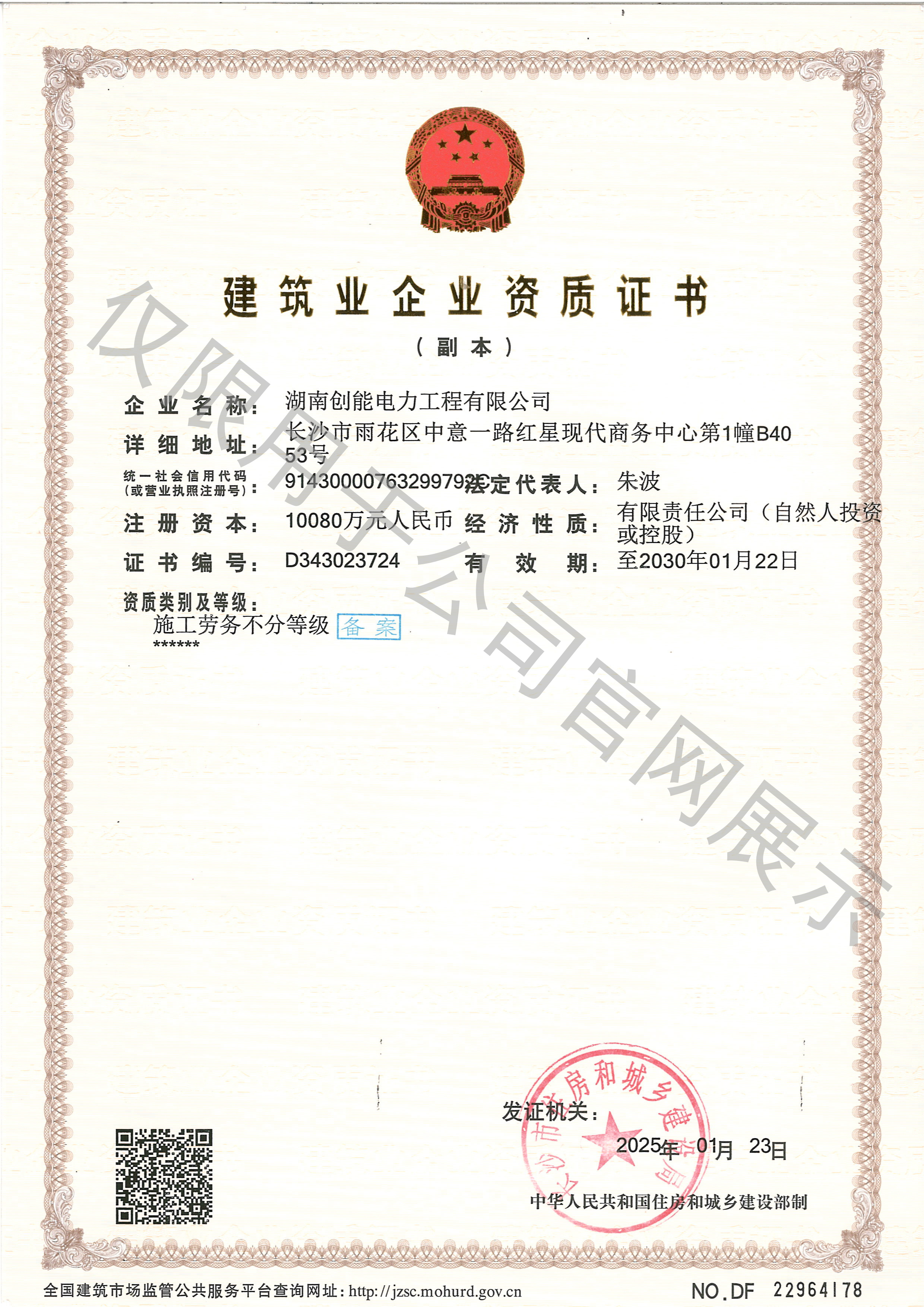 專業承包電子與智能化工程壹級、專業承包城市及道路照明工程貳級