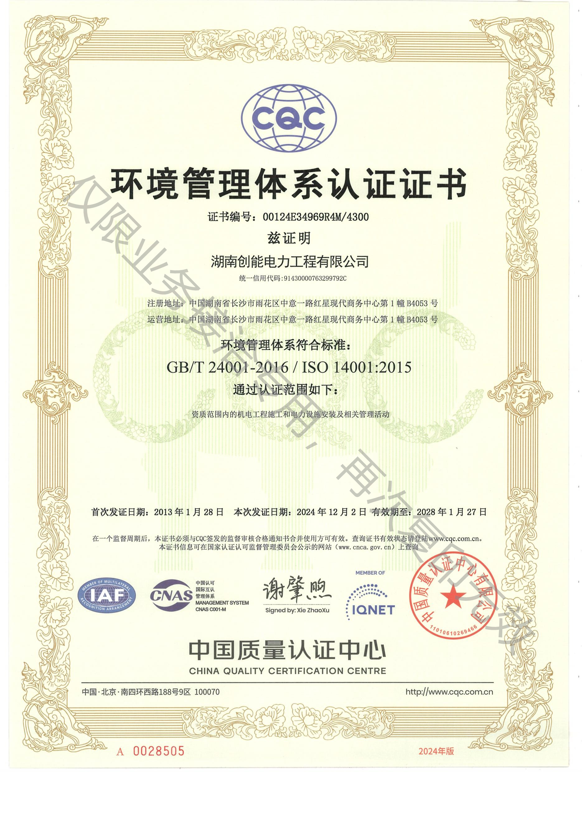 電力總包貳級、機電總包貳級、電子及智能化壹級